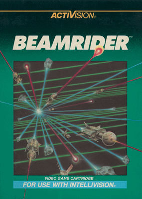 Beamrider was an original Intellivision game programmed at Cheshire Engineering under contract to Activision. Inspiration for the game came to David Rolfe one day as he was leaning back in his chair staring at the ceiling. Suddenly the receding grid of acoustical tiles became an outer space playing field.