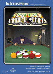 Programming pool was a challenge: with 16 balls on the table, the game requires more than the Intellivision's 8 moving objects. At Mattel Electronics, Marketing had rarely allowed programmers to multiplex objects because they objected to the resulting screen flicker (the one exception had been the fireballs in Masters of the Universe: The Power of He-Man, since it made sense for them to flicker). But for pool, it was the only practical solution.