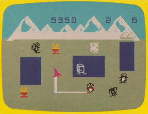 Based on the proposal and demo, Thin Ice was given the go-ahead. After programmer Julie Hoshizaki completed the revised Lock ’n’ Chase in August, she and graphic designer Monique Lujan-Bakerink began work on the game. Everything went smoothly, except for a brief fight with someone in Marketing who wanted to change the name to Arctic Squares, a play on Arctic Circle. (He lost, but not before some literature was released to the public using that name.) The game was completed on schedule in mid-May, 1983.
