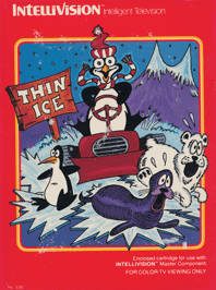 Finally, in 1986, INTV Corporation released Thin Ice. They went with the original 8K version -- no introduction screens, no hidden Voochko -- to save production costs. (The title screen still says "Mattel Electronics presents...") The game was introduced in the Fall 1986 INTV catalog.