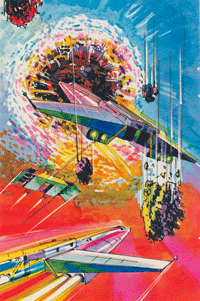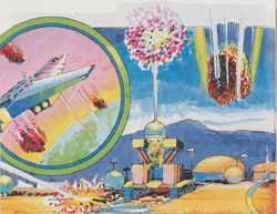 An Aquarius version was also released, as was an M Network version called Astroblast for the Atari 2600. A musical adaptation, Melody Blaster, ws released for the ECS Music Synthesizer. An obsene version, called...well, we can't tell you what it was called, was developed for in-house use only. The Story of this version can found in a TRON Solar Sailer FUN FACT.