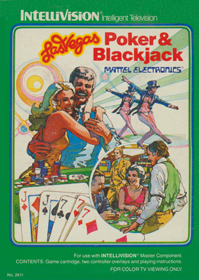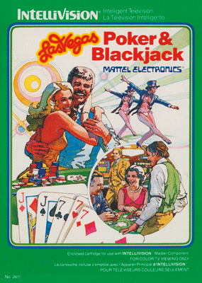 FUN FACT: Because it came free with the Intellivision Master Component during 1980, 1981 and most of 1982, Las Vegas Poker & Blackjack had the most distribution of any Intellivision cartridge: over 1,900,000 shipped by the end of 1982. When it was eventually replaced by Astrosmash as the free cartridge, distribution fell dramatically; only 2,500 Las Vegas Poker & Blackjack cartridges were shipped in the first six months of 1983.