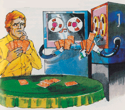While a fairly minor release (36,000 initial shipment), Royal Dealer had a major effect on the development cycle inside Mattel Electronics. Long overdue from APh, when the game was finished it went straight into production with only brief playtesting by a few other programmers. When it was too late, it was discovered that the cartridge contained a major -- and easy to come across -- bug that crashed the game. Because of the low sales expected, Marketing decided to ship the cartridge anyway with an errata slip, but they were furious. The Quality Assurance department, which had frequently been bypassed on late games such as this one and B-17 Bomber, was immediately given life-or-death authority over all future games: nothing was allowed to be released until the official game testers Traci Roux and Dale Lynn had signed off on it. They were merciless: stomping on a game then gleefully showing the videotaped results to the programmer when they found a bug. But it paid off; to this day, we haven't seen any reports of bugs in games they approved.