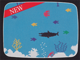 It's survival of the fittest in the deep, dark waters of the ocean. And you're just a little fish! You must eat smaller fish to stay alive and grow. But you're not the only one struggling for survival. Bigger fish are out to eat you. Beware, the most feared predator of all is on your tail. Shark, Shark! One or two-player action.